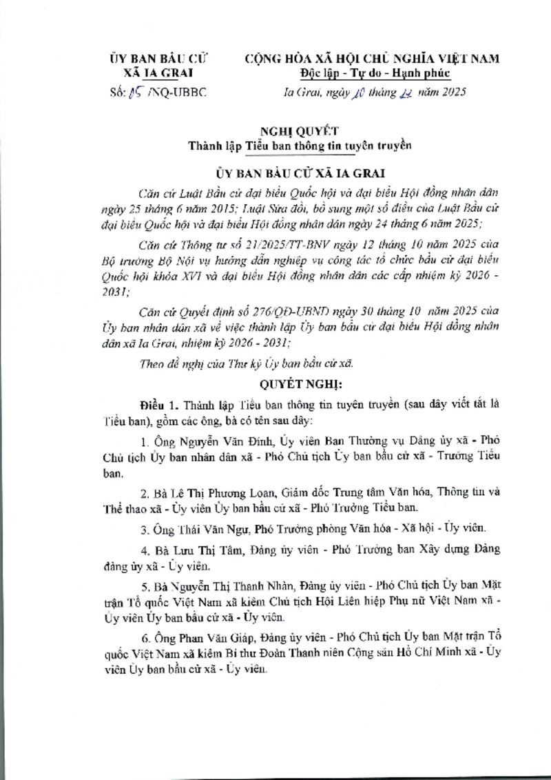 | Tiêu đề văn bản | NGHỊ QUYẾT THÀNH LẬP TIỂU BAN THÔNG TIN TUYÊN TRUYỀN | ||