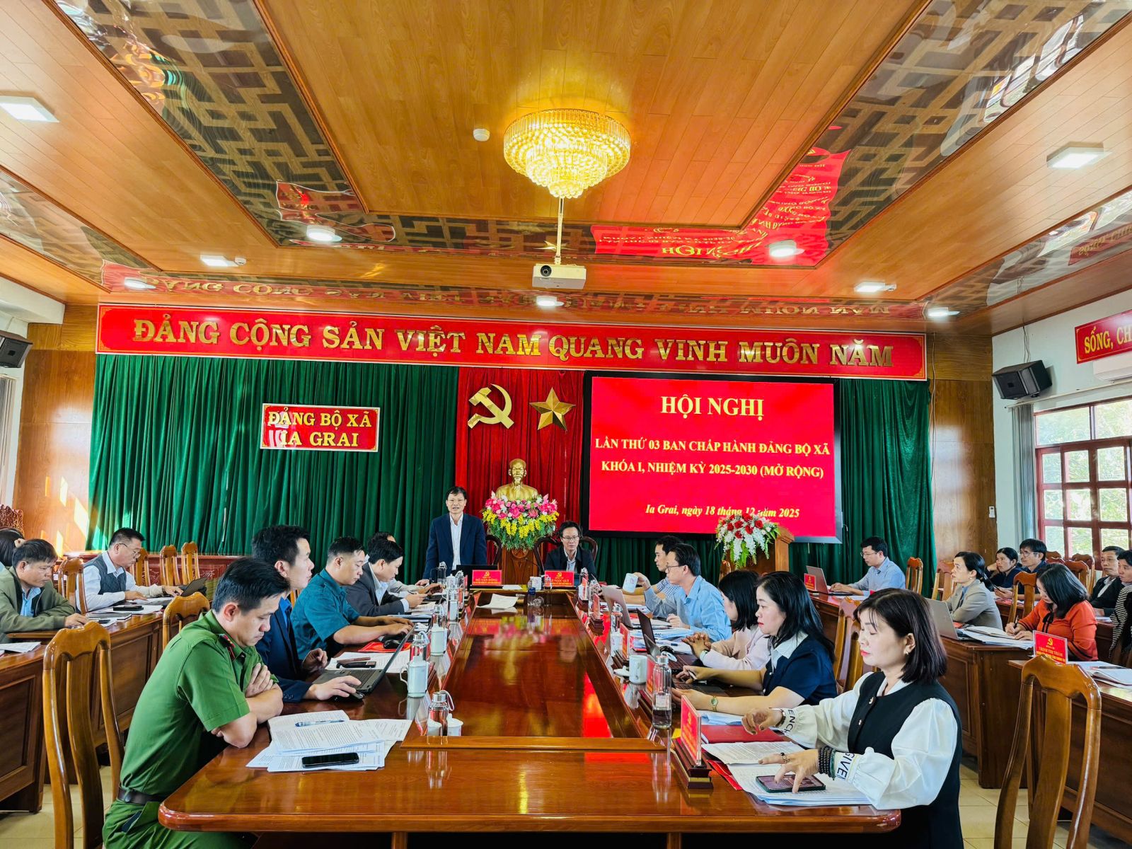 Theo báo cáo, năm 2025, trong bối cảnh sắp xếp lại đơn vị hành chính, tổ chức chính quyền địa phương theo mô hình hai cấp, Ban Chấp hành Đảng bộ xã Ia Grai đã tập trung lãnh đạo, chỉ đạo triển khai đồng bộ các giải pháp phát triển kinh tế gắn với bảo đảm an sinh xã hội. Kinh tế của xã tiếp tục tăng trưởng; sản xuất nông nghiệp được duy trì ổn định với tổng diện tích gieo trồng đạt trên 1.370 ha; công tác chăn nuôi, phòng chống dịch bệnh được thực hiện tốt; thương mại, dịch vụ tiếp tục phát triển. Tổng thu ngân sách trên địa bàn đạt và vượt kế hoạch đề ra. Các lĩnh vực văn hóa – xã hội có nhiều chuyển biến tích cực. Quốc phòng – an ninh được giữ vững, trật tự an toàn xã hội ổn định. Công tác xây dựng Đảng, xây dựng hệ thống chính trị được chú trọng; tổ chức thành công Đại hội đại biểu Đảng bộ xã lần thứ I, nhiệm kỳ 2025–2030.
