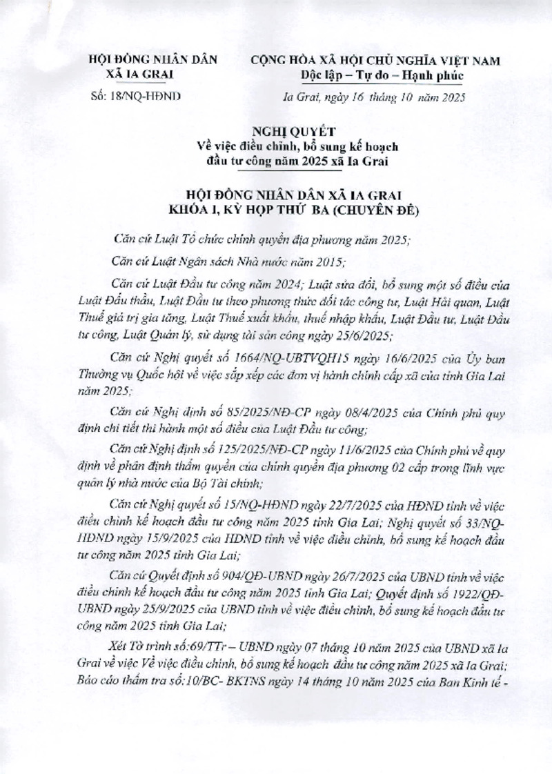 | Tiêu đề văn bản | Nghị quyết về việc điều chỉnh, bổ sung kế hoạch đầu tư công năm 2025 | ||