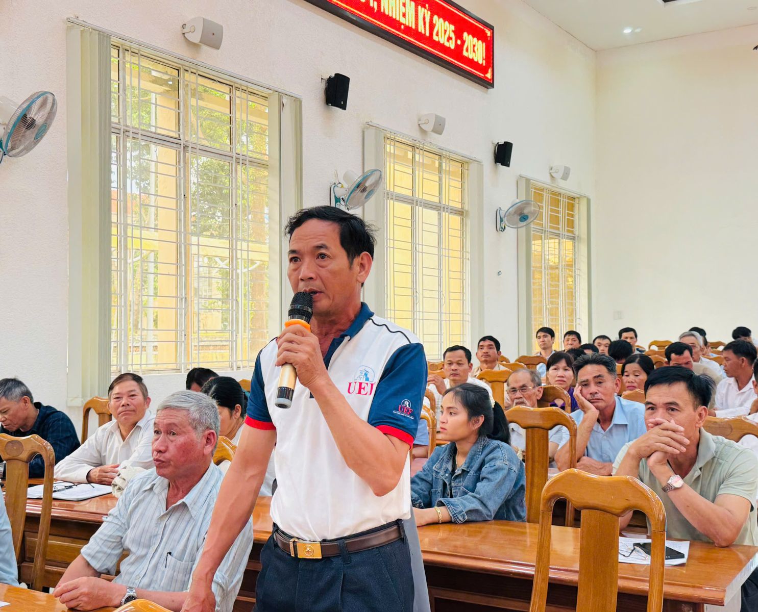 Phát biểu tại buổi tiếp xúc, đồng chí Đỗ Văn Đông, Chủ tịch UBND xã ghi nhận toàn bộ ý kiến của cử tri, khẳng định các phản ánh của cử tri đều đúng, sát thực tế và đã tồn tại kéo dài từ trước khi sáp nhập. Đối với lĩnh vực đất đai và thủ tục hành chính, Chủ tịch UBND xã yêu cầu Phòng Kinh tế và Văn phòng Đăng ký Đất đai khẩn trương xử lý hồ sơ tồn đọng, giải quyết cho người dân trong thời gian sớm nhất. Về an ninh trật tự, đồng chí đề nghị Công an xã tăng cường biện pháp nghiệp vụ để phòng ngừa, đấu tranh với tội phạm trộm cắp, đồng thời mong người dân phối hợp, không che giấu và mạnh dạn tố giác. Đồng chí cũng mong rằng, người dân chia sẻ với cán bộ, công chức sau sáp nhập, đang phải xử lý khối lượng công việc lớn, liên tục cập nhật văn bản mới. Với đơn thư tranh chấp, xã sẽ tiếp tục hòa giải, trường hợp phức tạp sẽ hướng dẫn người dân đưa ra tòa giải quyết theo quy định. Đồng chí cũng ghi nhận và sẽ chỉ đạo xử lý các vấn đề thuộc thẩm quyền và tiếp tục tổng hợp, báo cáo cấp trên những nội dung vượt thẩm quyền để giải quyết trong thời gian tới.
