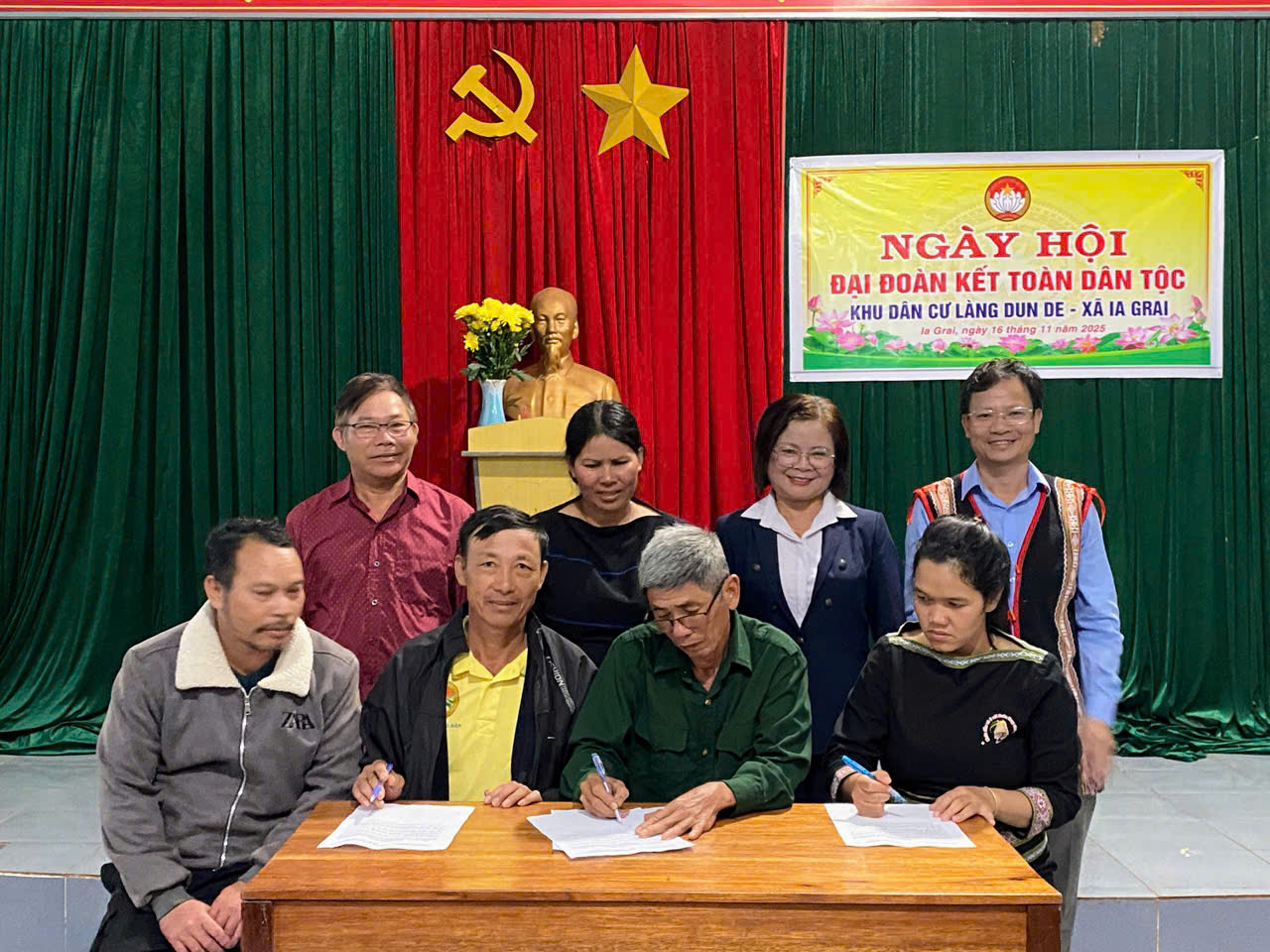 Làng Hlũ, xã Ia Grai có 145 hộ với 606 nhân khẩu, đa số là người Jrai. Ngày hội đại đoàn kết các dân tộc năm 2025 được Ban công tác Mặt trận cùng với Chi bộ và Ban nhân dân làng Hlũ tổ chức vào sáng 16/11 với sự tham dự của các hội đoàn thể cùng các hộ gia đình tiêu biểu trong làng. Ban công tác Mặt trận đã ôn lại truyền thống 95 năm Uỷ ban MTTQ Việt Nam; đánh giá hoạt động của Ban công tác Mặt trận trong việc vận động nhân dân thực hiện phong trào toàn dân đoàn kết xây dựng đời sống văn hoá ở khu dân cư; cuộc vận động làm thay đổi nếp nghĩ, cách làm giúp đỡ các hộ khó khăn vươn lên thoát nghèo.