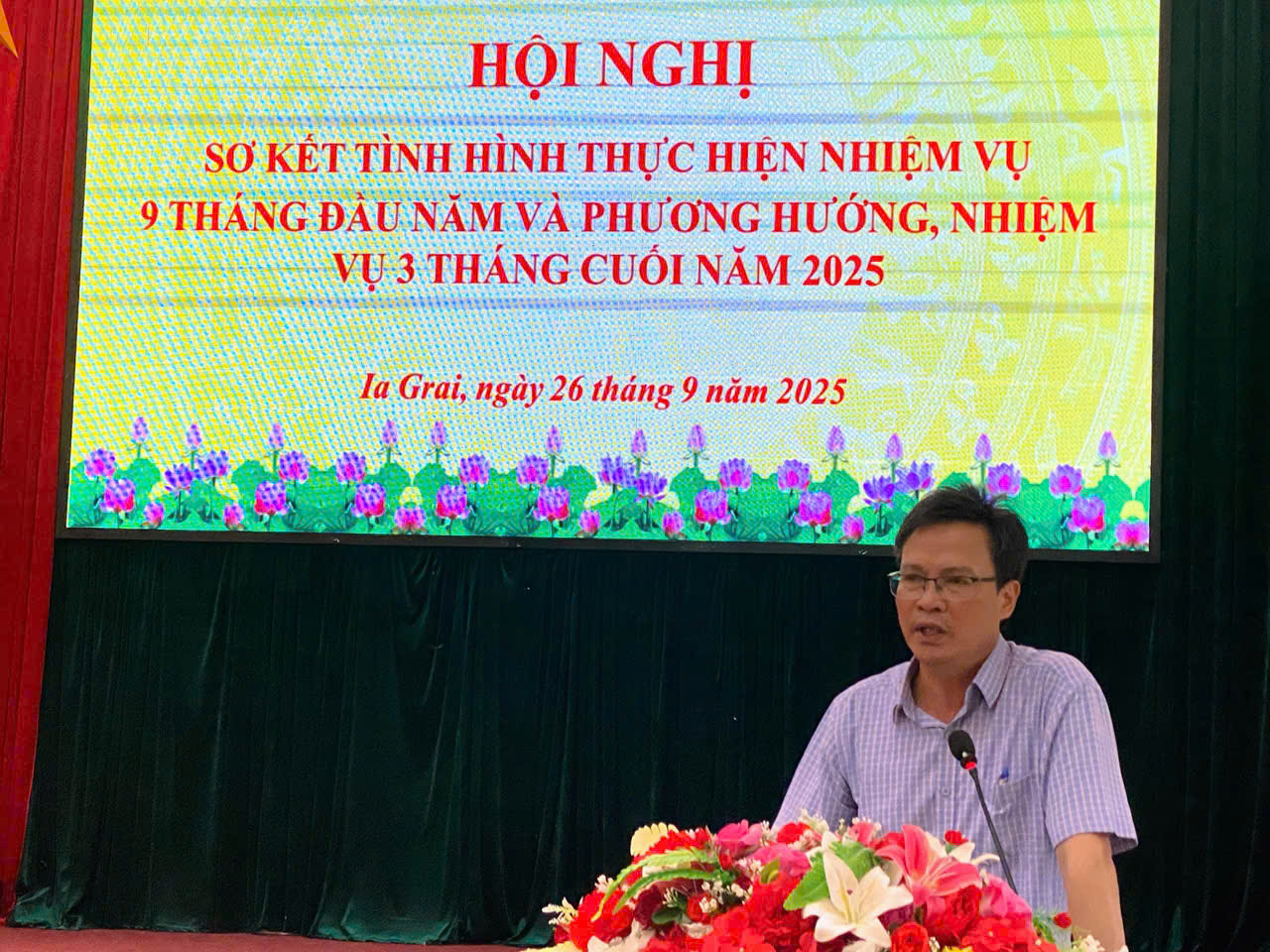 Tại hội nghị, UBND xã triển khai kế hoạch phát triển kinh tế - xã hội, bảo đảm quốc phòng, an ninh 3 tháng cuối năm 2025: tiếp tục thực hiện các chỉ tiêu phát triển kinh tế - xã hội được giao tại Quyết định số 889/QĐ-UBND ngày 25/7/2025 của UBND tỉnh Gia Lai; Nghị quyết điều chỉnh chỉ tiêu phát triển kinh tế - xã hội, bảo đảm an ninh - quốc phòng 6 tháng cuối năm 2025 tại kỳ họp thứ 2 HĐND xã khóa I, nhiệm kỳ 2021-2025; Quyết định số 175/QĐ-UBND ngày 14/8/2025 của UBND xã; dự toán thu, chi ngân sách nhà nước năm 2025 được giao tại Quyết định số 176/QĐ-UBND ngày 14/8/2025; kế hoạch vốn được giao tại các Quyết định số 177-180/QĐ-UBND ngày 14/8/2025 của UBND xã.