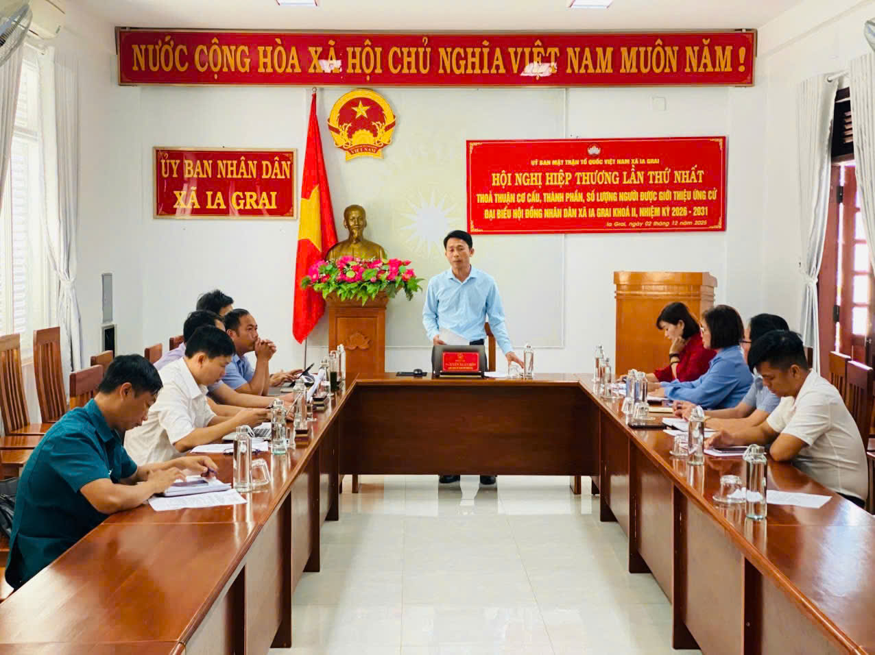 Đồng chí Lê Ngọc Quý, Bí thư Đảng ủy – Chủ tịch HĐND xã, Trưởng Ban Chỉ đạo bầu cử xã Ia Grai dự và chỉ đạo hội nghị. Tham dự hội nghị còn có các đồng chí thành viên Ban Chỉ đạo; Ủy ban bầu cử xã Ia Grai.