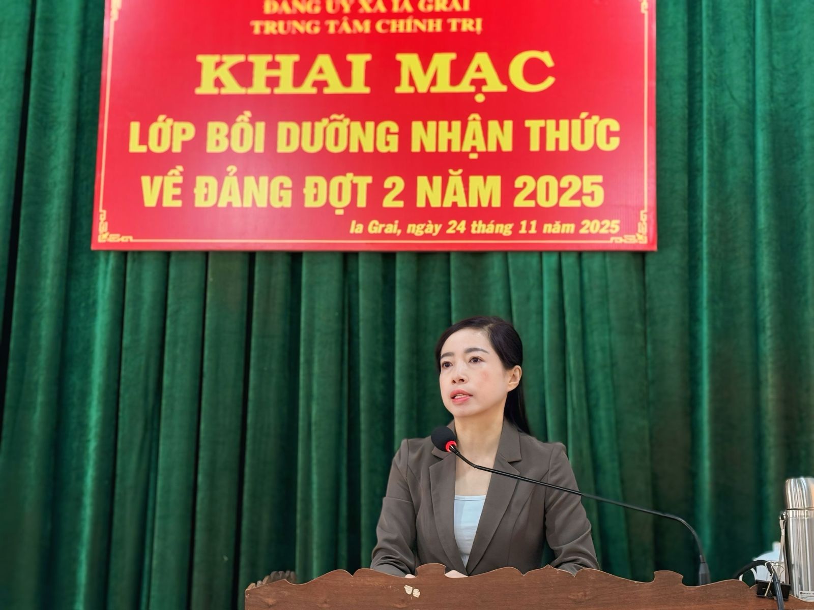 Phát biểu tại lễ khai mạc, đồng chí Nguyễn Thị Phương Thảo nhấn mạnh: lớp bồi dưỡng nhận thức về Đảng là điều kiện quan trọng để kết nạp đảng viên, góp phần nâng cao tỉ lệ kết nạp đảng viên hằng năm của Đảng bộ xã. Đồng chí đề nghị các báo cáo viên, giảng viên nghiên cứu kỹ nội dung các chuyên đề, tiếp tục đổi mới phương pháp truyền đạt để nâng cao chất lượng giảng dạy. Đồng thời đề nghị các học viên nghiêm túc học tập, chấp hành đúng nội quy lớp học.