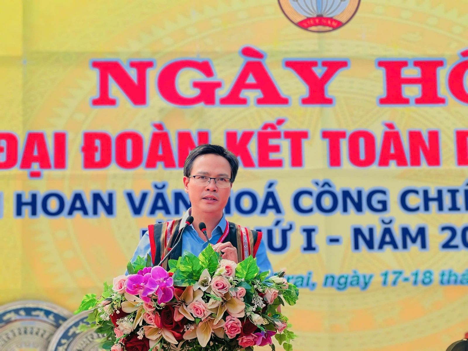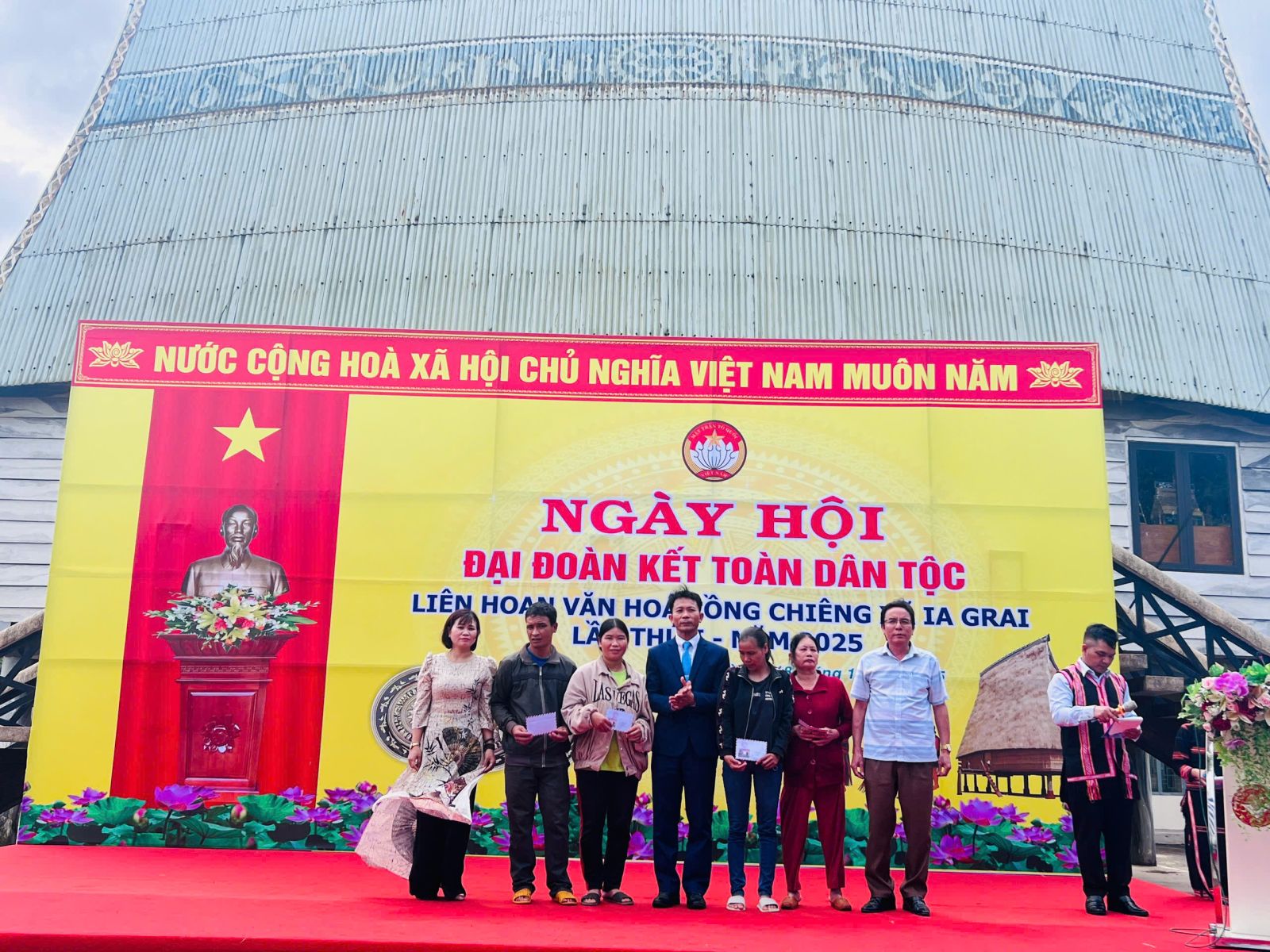 Thay mặt Uỷ ban MTTQ Việt Nam xã Ia Grai, ông Nguyễn Xuân Bổn, Chủ tịch UBMTTQVN xã đã trao kinh phí hỗ trợ cho các thôn làng tham gia liên hoan cồng chiêng, trò chơi dân gian.