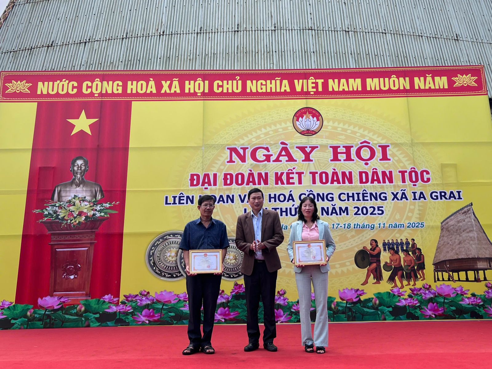Cũng trong sáng 18/11, Ban tổ chức đã tiến hành bế mạc và trao giải liên hoan cồng chiêng xã Ia Grai lần thứ I, năm 2025. Theo đó, các nghệ nhân làng Bẹk xuất sắc giành giải A với tiết mục mừng lúa mới; Làng Mèo đạt giải B; Đội cồng chiêng làng O Re 1, O Rê 2 và Đội cồng chiêng Trường Phổ thông DTNT xã cùng đạt giải C.