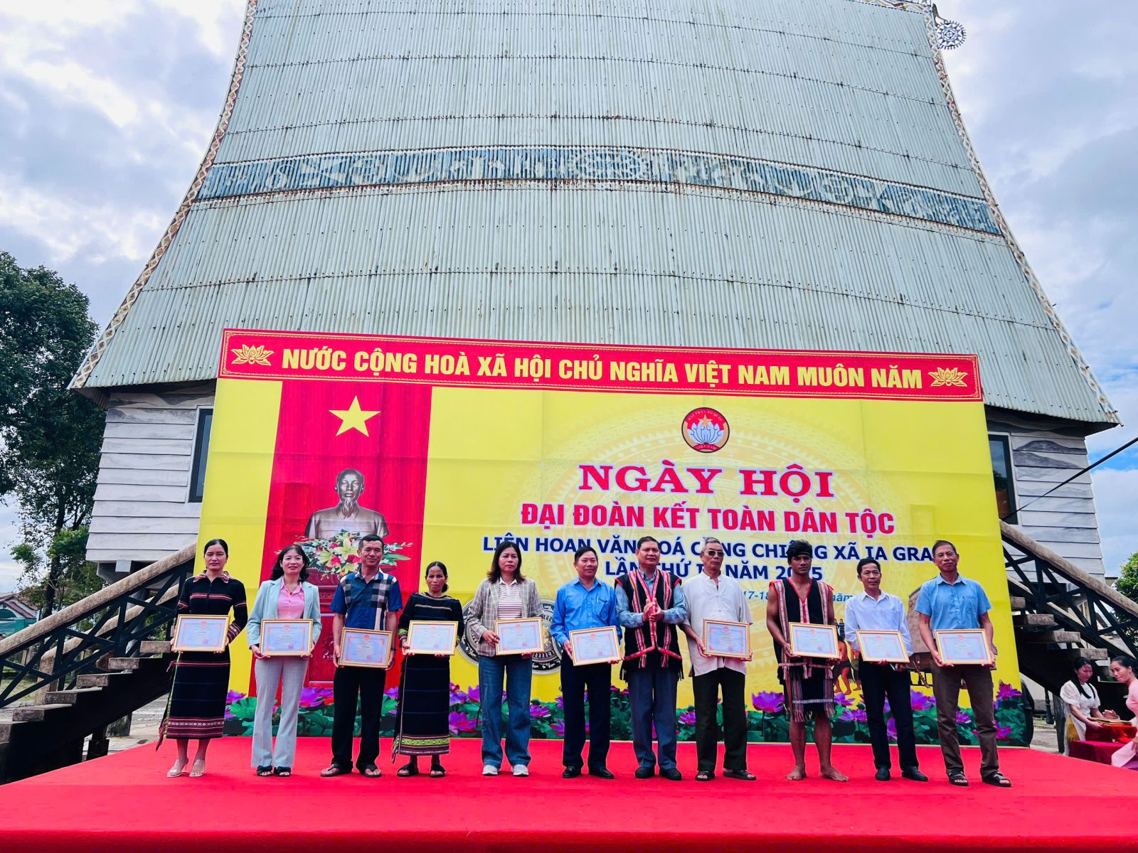 Cũng trong dịp này, Đảng uỷ-HĐND-UBND- Uỷ ban MTTQ Việt Nam xã Ia Grai tri ân, biểu dương các doanh nghiệp đã tài trợ kinh phí tổ chức liên hoan cồng chiêng lần thứ I; trao giấy chứng nhận các khu dân cư đạt danh hiệu khu dân cư văn hoá; biểu dương các khu dân cư và gia đình có đóng góp tích cực cho phong trào toàn dân đoàn kết xây dựng đời sống văn hoá ở khu dân cư; tặng quà cho các gia đình có hoàn cảnh khó khăn và trao giải cho các thôn, làng đạt thành tích cao tại liên hoan văn hoá cồng chiêng.