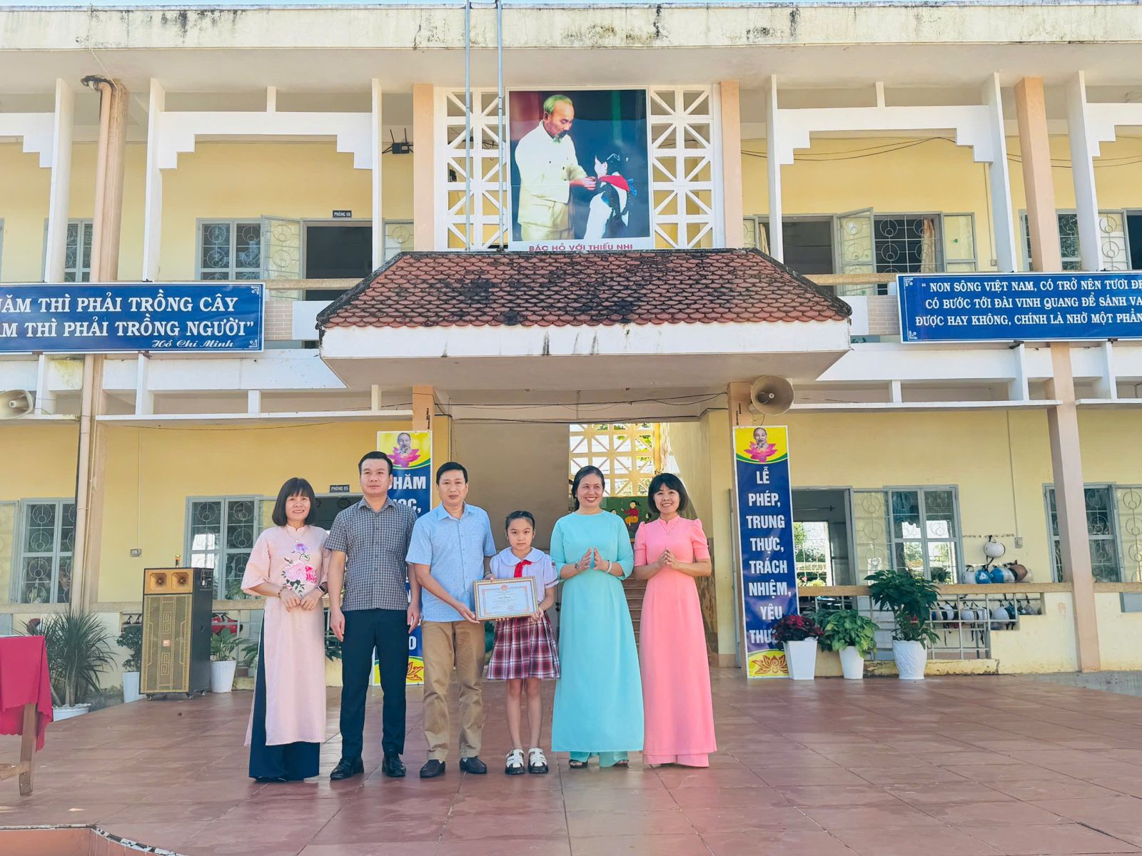 Sáng 10/11, đồng chí Nguyễn Văn Đính, Ủy viên Ban Thường vụ Đảng ủy xã, Phó Chủ tịch UBND xã Ia Grai đã trao Giấy khen của Chủ tịch UBND xã cho em Phan Trần Uyên Nhi, học sinh lớp 5A, đã đạt giải Khuyến khích Đại sứ văn hóa đọc toàn quốc năm 2025.