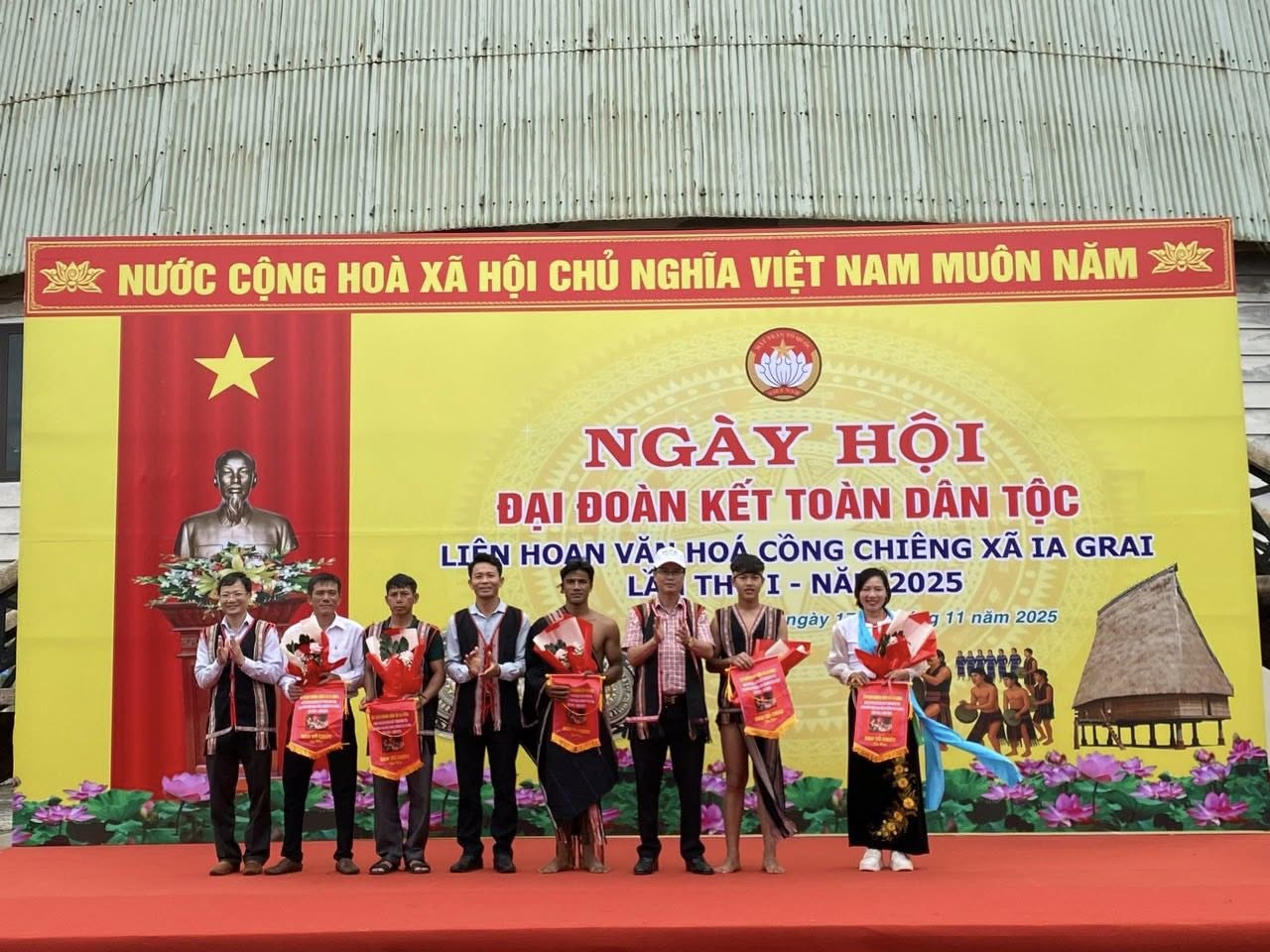 Ở nội dung Liên hoàn văn hoá cồng chiêng xã Ia Grai lần thứ I, năm 2025 thu hút 4 đội chiêng tham gia, gồm: Làng Bẹk, làng Mèo, làng O Re và các học sinh Trường PTDT Nội trú xã. Các nghệ nhân đã trình diễn các bài chiêng truyền thống như mừng lúa mới, mừng chiếng thắng, lễ Pơ Thi… Ban tổ chức sẽ trao các giải thưởng cho các đội chiêng có màn trình diễn xuất sắc./.