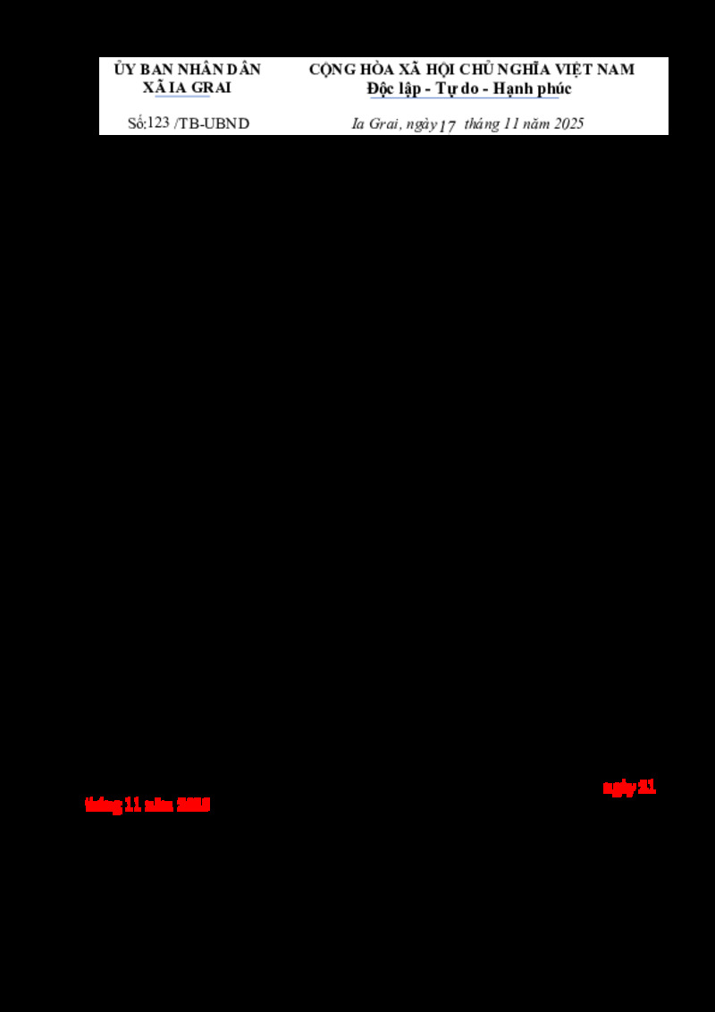 | Số hiệu | 123/TB-UBND | Cơ quan ban hành | UBND xã Ia Grai |